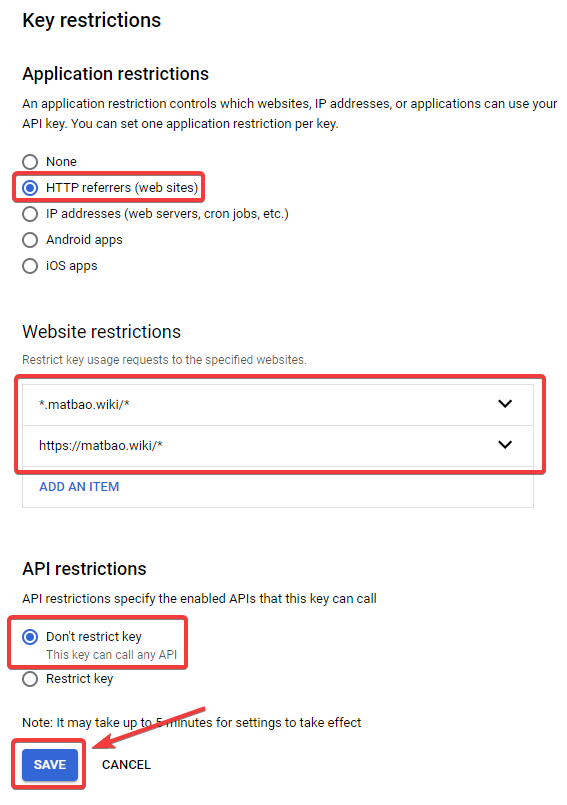 Lưu ý: your-domain.com là tên miền của bạn muốn sử dụng Google Maps API.